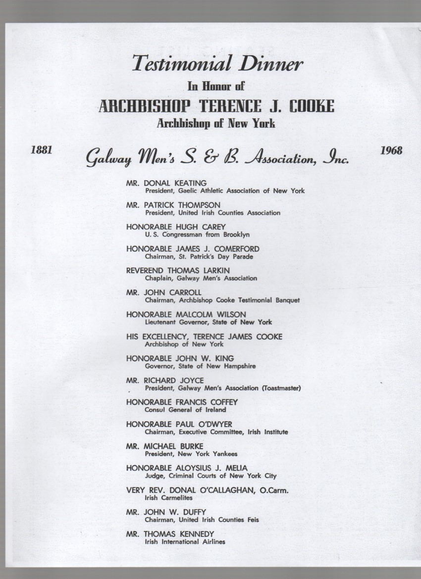 Colonel Patrick Kelly George U. Harvey, Queens Borough President James J. O’Kelly Joseph Burke Patrick Ford Lucy Gill (Rev. Mother Irene) Michael Norton Michael J. Logan Patrick Sarsfield Gilmore Dennis Casey presenting a cheque to University Dennis Casey presenting a cheque to University President Denis Casey unveiling plaque in memory of Fr. Eugene McLoughlinThe Fall Ball – All Proceeds donated to the ScholarshipT.L Murphy at Col. Patrick O’Rourke MonumentCeltic CrossCeltic CrossThe Irish Brigade MonumentThe Irish Brigade MonumentBasilica of Sainte Anne de BeaupreBasilica of Sainte Anne de Beaupre“The Black Rock”“The Black Rock”Galway group members assembling for the commemorative procession in Qubec City on Sunday 17 August 1997The Fever Hospital “The Irish Monument”The Ecumenical serviceMemorial Crosses at the Mass GravesitesMembers of the Galway ContingentMembers of the Galway Contingent